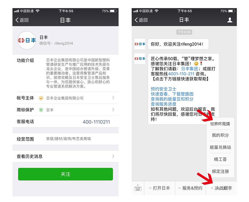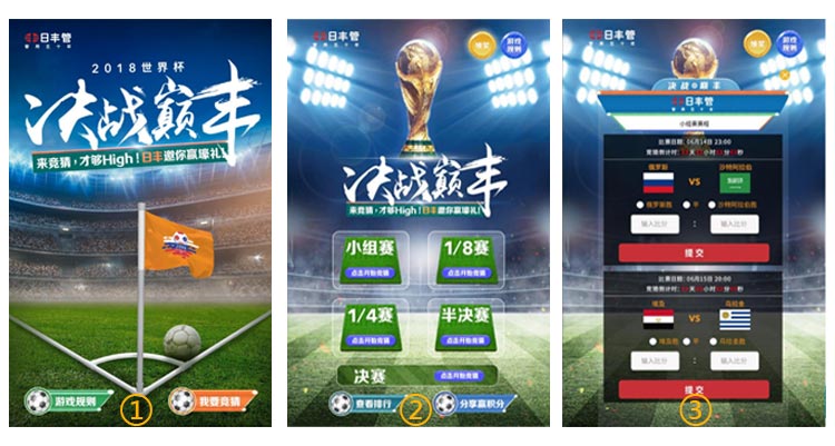 “2018世界杯·決戰巔豐”線上競猜互動游戲舉辦時間為6月13日20:00至7月15日23:00,球迷們只要在微信上關注日豐公眾號(rifeng2014),點擊菜單欄“決戰巔豐”—“世界杯競猜”,即可開始世界杯競猜。